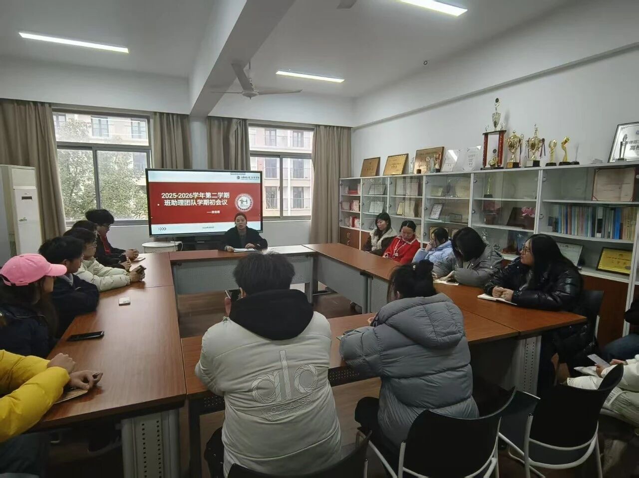 为明确新学期班助理工作方向,提升服务意识与履职能力,人工智能学院于3月4日在明460召开班助理开学工作专题会议。班助理团队指导老师张佳萌老师出席会议并作指导,全体班助理参会。会议旨在总结过往经验、部署新学期重点任务,为班助理队伍高效开展工作奠定坚实基础。会上,张佳萌老师结合学院育人要求和班助理日常工作实际,围绕队伍建设、履职尽责、自身建设三大核心维度提出具体要求,叮嘱各位班助理,首先要扎实做好班级基础工作,及时更新维护学生各类信息,严格按学院要求规范填报报表,确保数据准确、信息传递顺畅;其次要抓实班级管理与学风建设,做好出勤统计和纪律监督,主动沟通同学,掌握大家的学习思想动态,针对不同的学生做的精准施策;同时要当好师生桥梁纽带,及时上传下达信息,让师生沟通更高效;此外更要严格自律,在工作和生活中以身作则,坚守服务初心,做好同学们的朋辈榜样。参会班助理认真聆听、深入思考,纷纷表示对新学期工作有了更清晰的认知与更明确的目标。大家一致认为,此次会议不仅明确了工作任务,更强化了责任意识与服务意识,为后续开展班级管理、学风建设、学生服务等工作提供了有力指引。此次会议的顺利召开,有效凝聚了班助理队