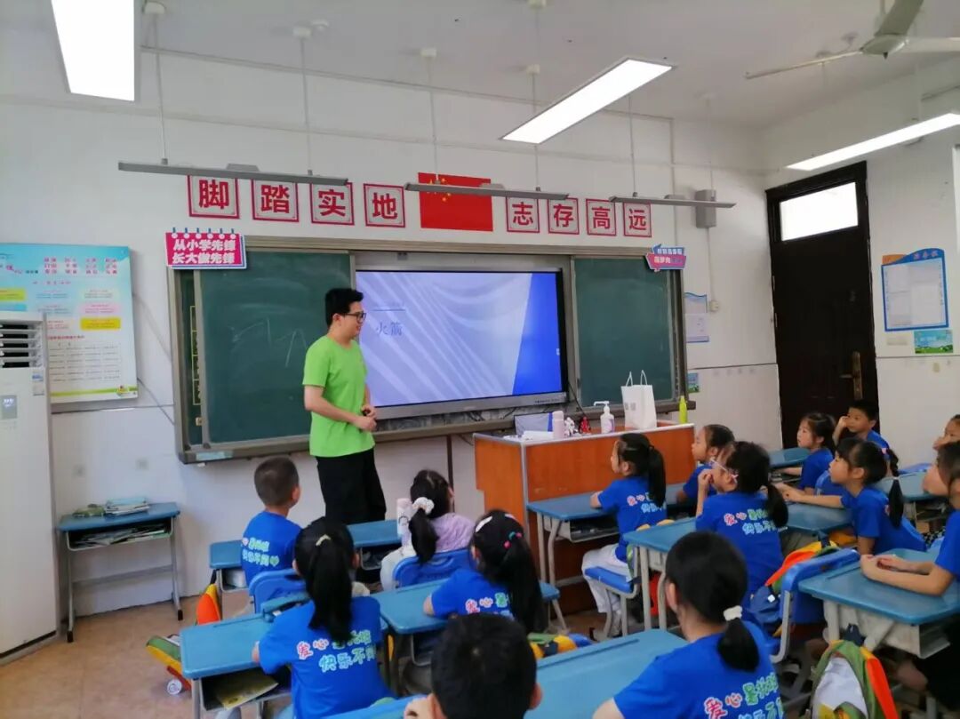 为践行“教育赋能,青春报国”的时代使命,人工智能学院网络工程专业暑期社会实践团的全政同学,走进上海市青浦区崧泽学校小学部课堂,开展了一场充满奇思妙想与硬核科技的“火箭梦工厂”课程。全政同学充分发挥其专业优势,将前沿教学理论与生动课堂实践相结合,带领一年级的小朋友们亲手“设计-建造-发射”属于自己的火箭,通过精心设计的闯关游戏、智能机器人互动、3D打印实景呈现和模拟软件入轨任务,点燃了孩子们探索宇宙的炽热梦想,展现了新时代大学生扎实的专业素养与强烈的社会责任感。