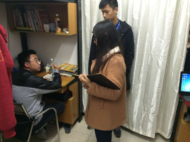 在过程中,三位老师逐一走访宿舍,了解同学们的视频观看情况和观后感的书写情况,并做了详细记录。同时,老师们还积极引导同学们宿舍学习及学习氛围营造的必要性和重要性,告诫学生在“寝室学习一小时”中一定要好好学习,不断提升自身的学习素养。