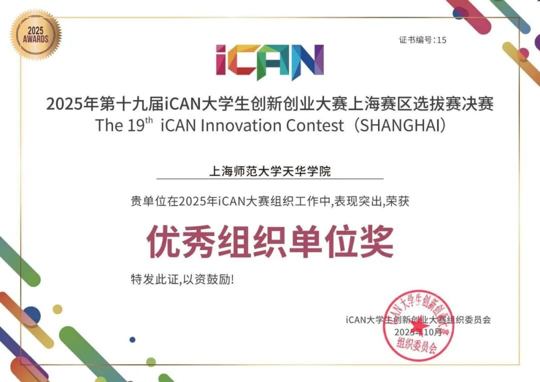尤为值得一提的是,上海师范大学天华学院因组织工作高效、参赛成果丰硕,被授予“优秀组织单位”称号,充分体现了学校在创新创业教育方面的扎实功底与卓越统筹能力。