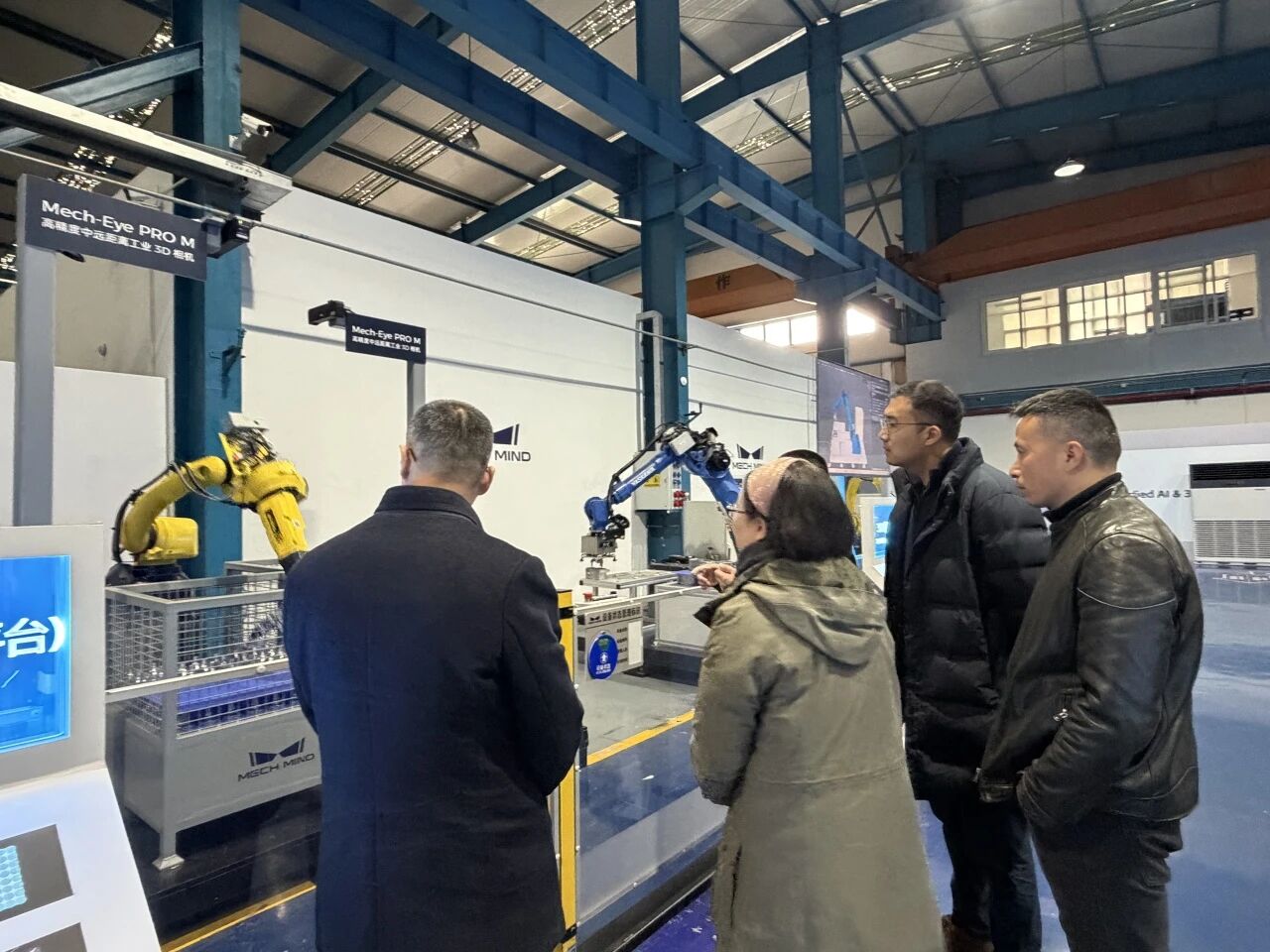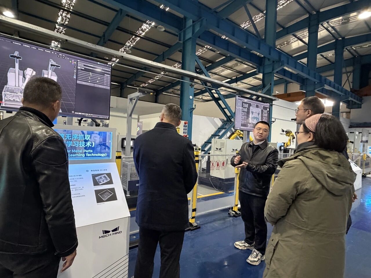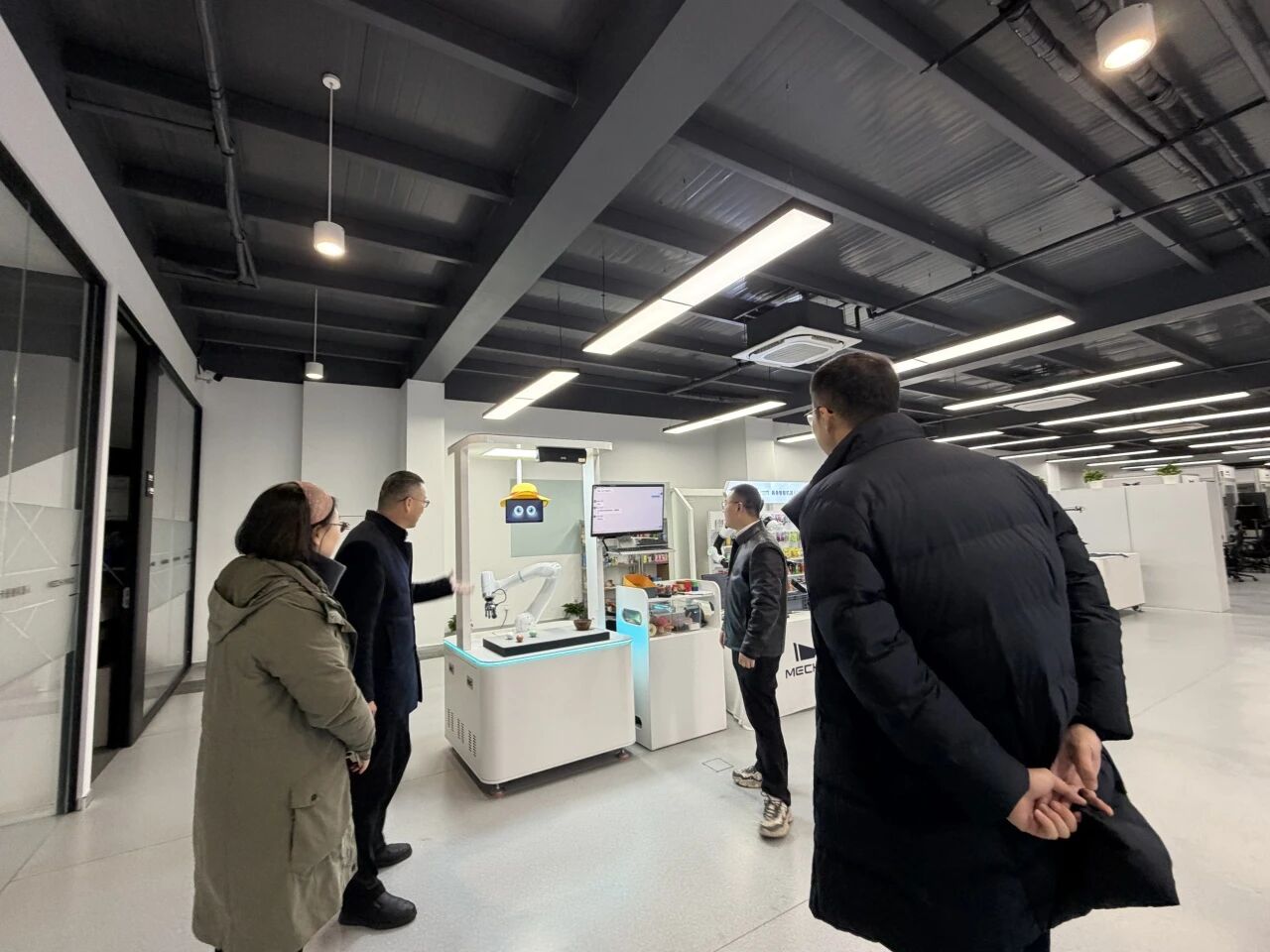 梅卡曼德公司作为全球领先的AI+机器人创新企业,在3D视觉感知、智能抓取及工业机器人应用等领域拥有核心技术优势。走访伊始,学院一行在公司技术人员的引导下,简要参观了企业展厅,初步了解了梅卡曼德机器人在现代化智能制造、物流分拣等场景中的前沿应用成果。