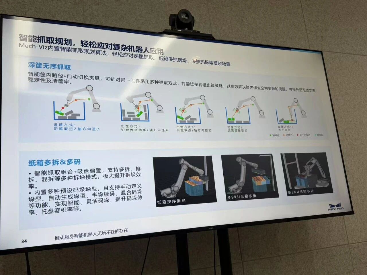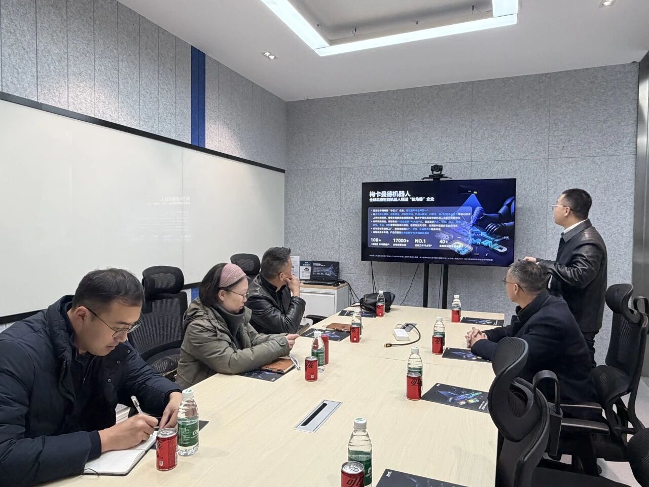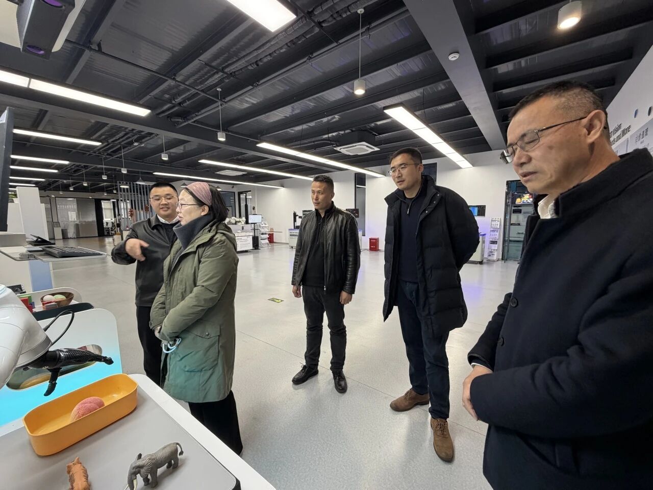 梅卡曼德公司作为全球领先的AI+机器人创新企业,在3D视觉感知、智能抓取及工业机器人应用等领域拥有核心技术优势。走访伊始,学院一行在公司技术人员的引导下,简要参观了企业展厅,初步了解了梅卡曼德机器人在现代化智能制造、物流分拣等场景中的前沿应用成果。