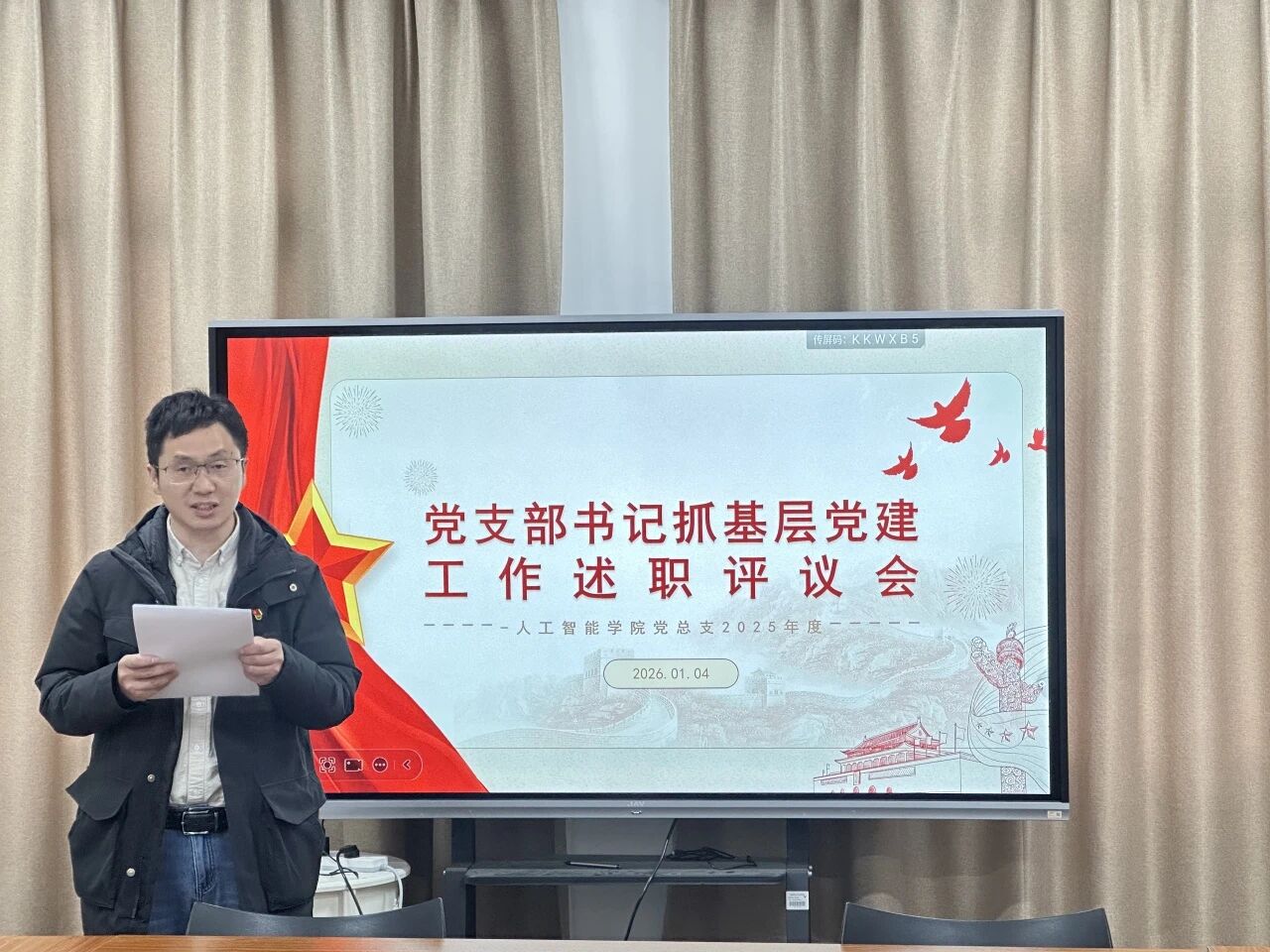 本次述职评议会议全面梳理了人工智能学院各党支部2025年度的工作成效与短板不足,通过“述职+点评+总结”的形式,进一步凝聚了党建引领发展的思想共识,明确了整改方向与工作重点。下一步,各党支部将以此次会议为契机,压实党建责任,狠抓整改落实,推动党建工作与学科建设、人才培养、师生服务深度融合,以高质量党建引领学院高质量发展,为培养担当民族复兴大任的时代新人筑牢组织根基。