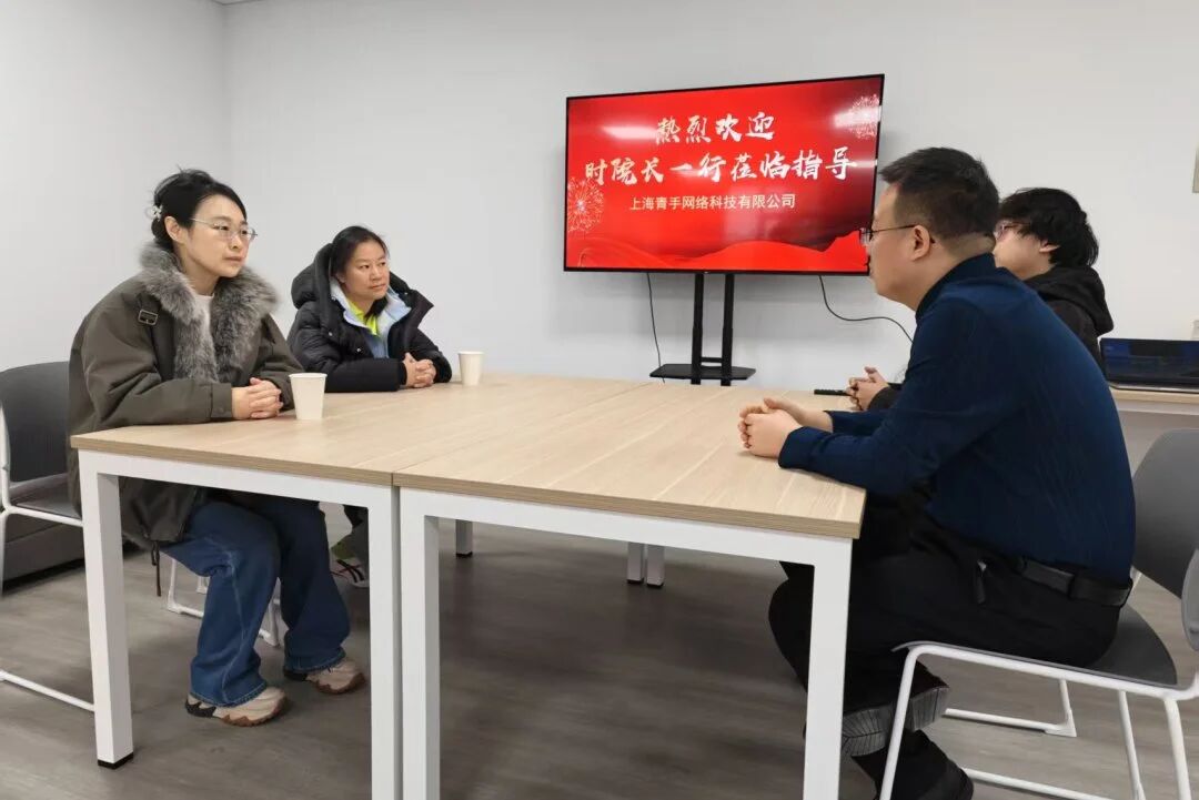 2026年1月20日,在时书剑副院长的指导下,天华学院人工智能学院院长助理赵艳妮、计算机科学与技术专业主任杨翠翠,赴入驻于天华人工智能科创园的上海青手网络科技有限公司进行合作交流。双方在“人工智能与物联网联合实验室”举行座谈,围绕企业发展、实习实践、产教融合及未来协作等议题展开深入讨论,共同探索校企协同育人新模式。