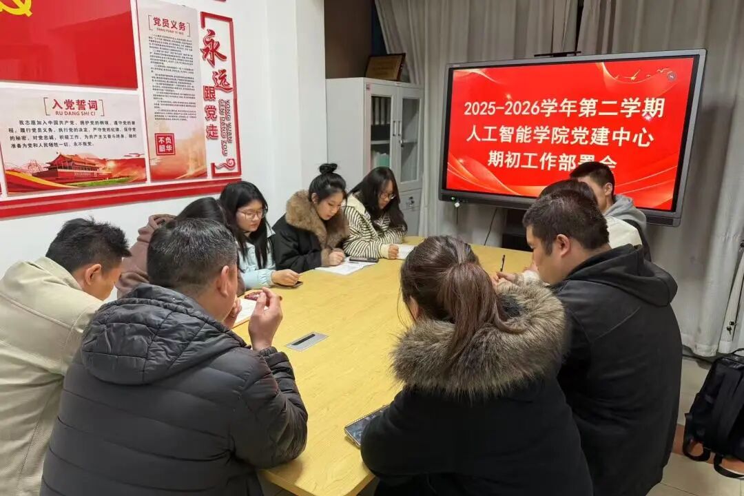 为扎实推进新学期党建工作规范化、精细化开展,明确工作任务、压实工作责任,3月16日19:00,人工智能学院党建中心于人工智能学院“一站式”学生社区服务站(原四号楼党员工作站)召开2025-2026学年第二学期期初工作部署会。党建中心主任李书祥、副主任陈树平以及纪检部指导老师李语诺出席会议,党建中心全体学生干部参加会议。