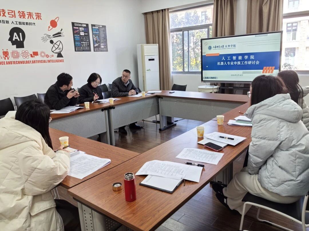 为高质量推进机器人工程专业申报工作,3月10日上午,人工智能学院组织召开专业培养方案研讨会,特邀上海应用技术大学荆学东教授莅临指导。人工智能学院常务副院长吕博、副院长李忠唐、机械电子工程专业主任朱龙俊及专业申报小组成员出席了会议。
