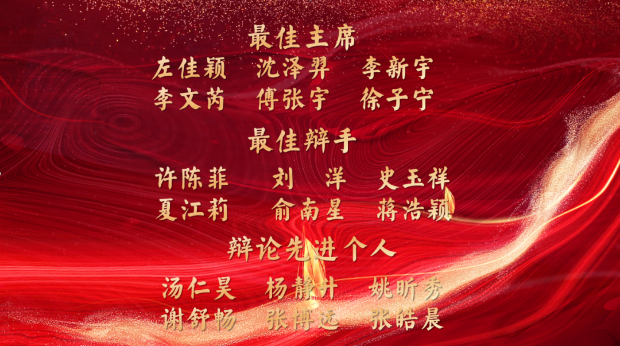 经过评委们的公正评判,比赛结果最终揭晓。首先公布了本次“AI·挑战杯”辩论赛的各项个人奖项,获奖名单如下(如图所示),由雷雨轩老师进行颁奖。
