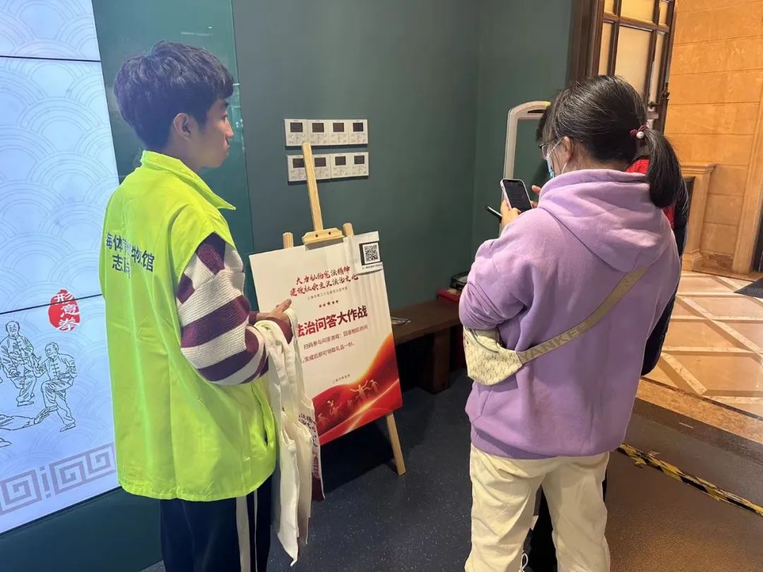 确定各展厅站岗人员之后,领队老师对其进行了岗位培训,告知了志愿者们如何引导游客通过在小程序上进行知识问答,通过积分制领取小礼品以及兑换VR体验。并且保证游客从一至四展厅依次参观,防止出现逆行的情况,避免游客在上下楼梯时因逆行而发生危险。