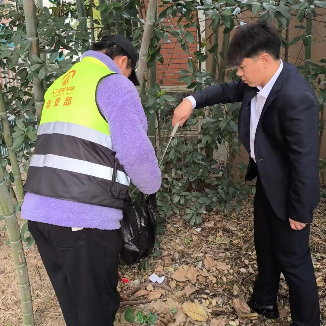 为了贯彻“校园烟头不落地,宿舍安全共保护”的理念,人工智能学院学生自治管理中心于12月3日上午11点45分组织针对宿舍楼周边区域烟头清理的志愿服务活动。参与的志愿者们准时到达指定地点,用自己的实际行动为美丽校园的建设助力,为构建绿色整洁的校园环境贡献出了自己的一份力量。此次活动不仅强化了校园环境的治理,也增强了学生们的环保意识和责任感。