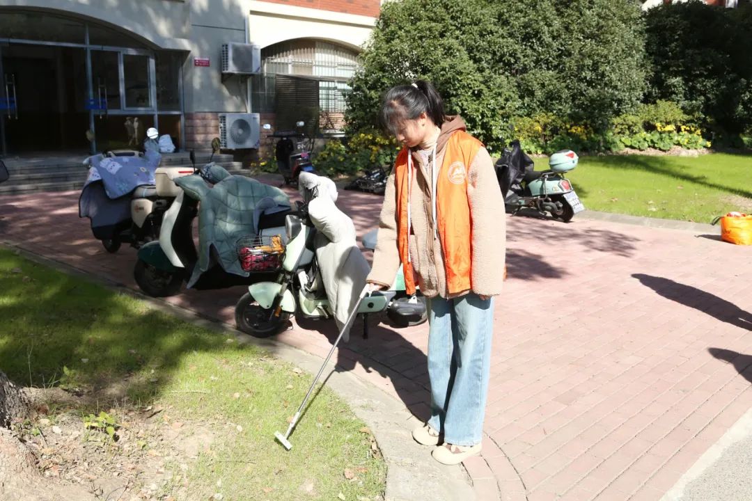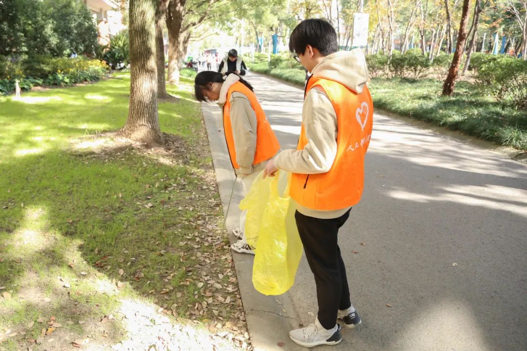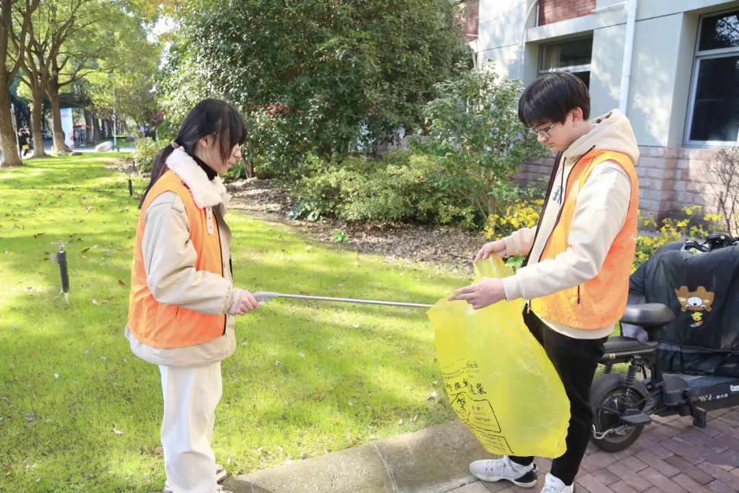 学生干部和志愿者们齐聚在明华楼包干区。大家身穿志愿者马甲,戴着手套,手拿铲子、垃圾夹,他们分成小组,分别负责不同区域的除草工作。冬日严寒,但大家的热情丝毫不减。大家熟练地使用工具,将杂草清除得干干净净。同时,志愿者们还负责捡拾垃圾,确保整个包干区的环境整洁。