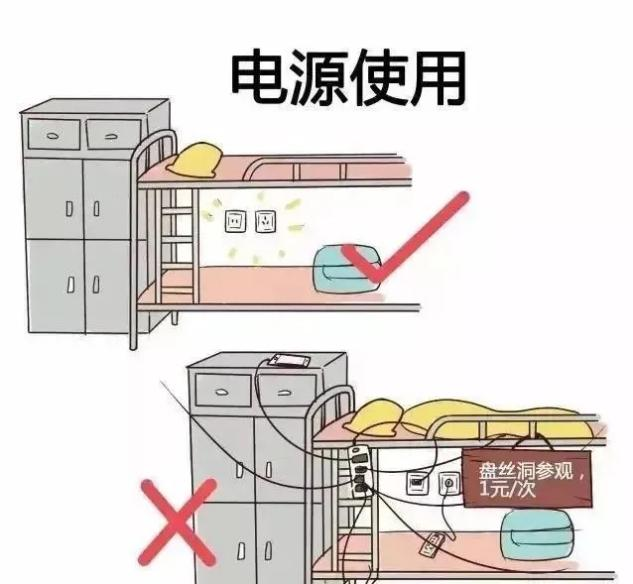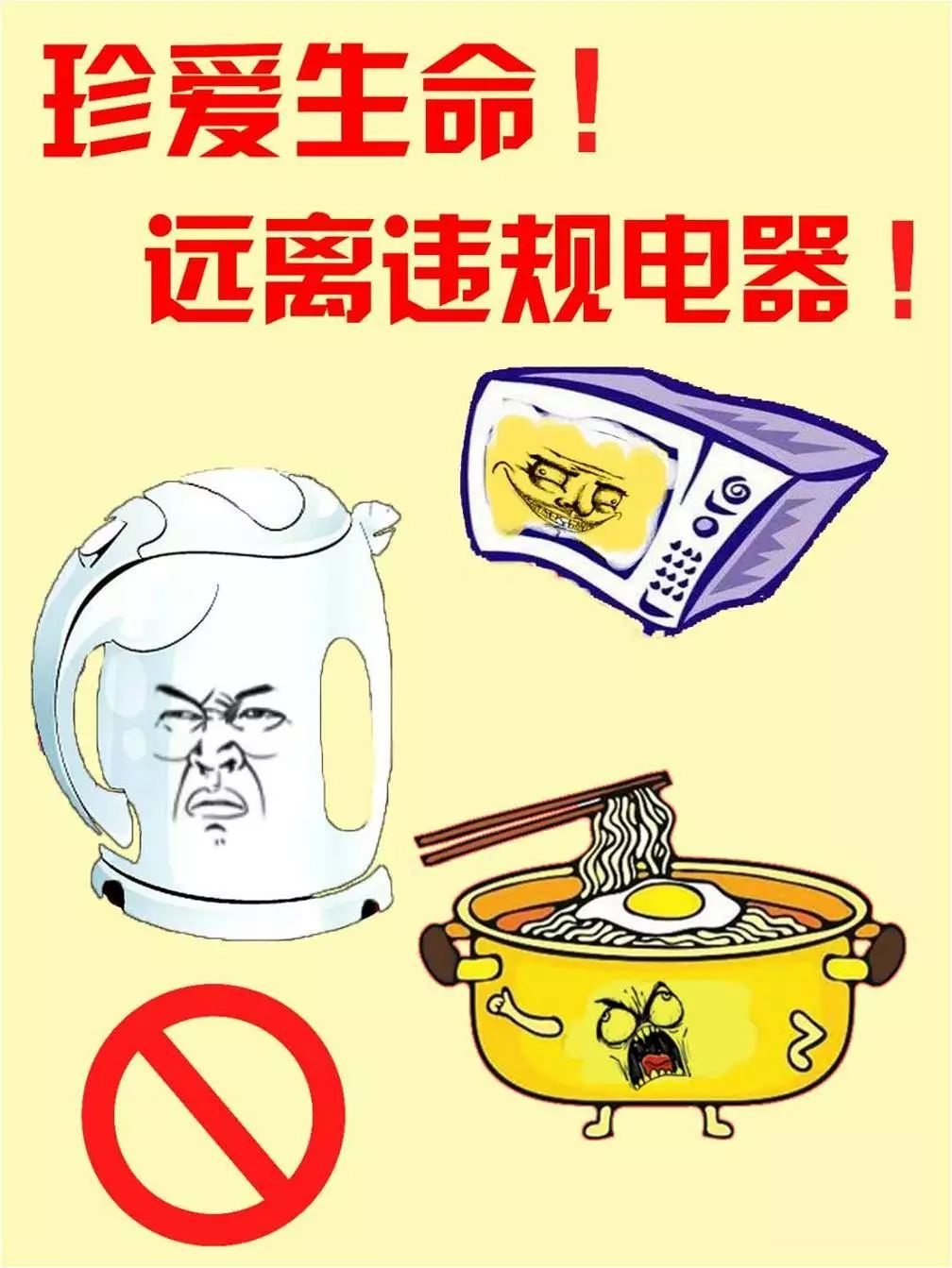 宿舍属于人员密集区,使用违章电器有可能会超出线路设备所能承载的最大负荷,易引起线路设备着火,存在严重安全隐患。