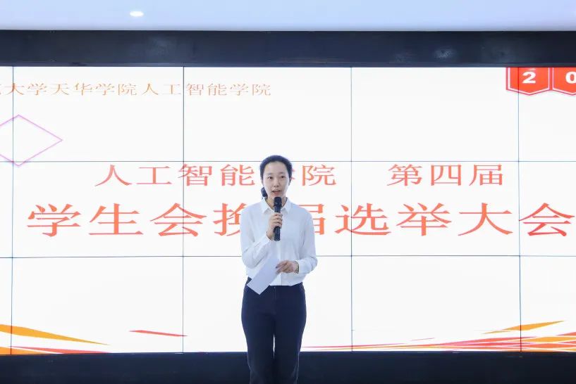 光阴流转,时间飞逝,又是一届全新的换届大会,为了坚持贯彻落实以学生会为组织,带头做好榜样模范工作,为学院树立良好形象,人工智能学院于2023年9月19日晚上7点在鑫华楼二楼大厅举行了第四届学生会换届选举大会。莅临本次换届大会的嘉宾有:人工智能学院第四届分团委书记徐婧老师,人工智能学院第三届分团委书记陈树平老师,主席团全体成员及各支线优秀学生代表们。本次换届大会严格按照规则及组织要求进行。人工智能学院第三届学生会主席李佳晔担任本次大会的主持人。