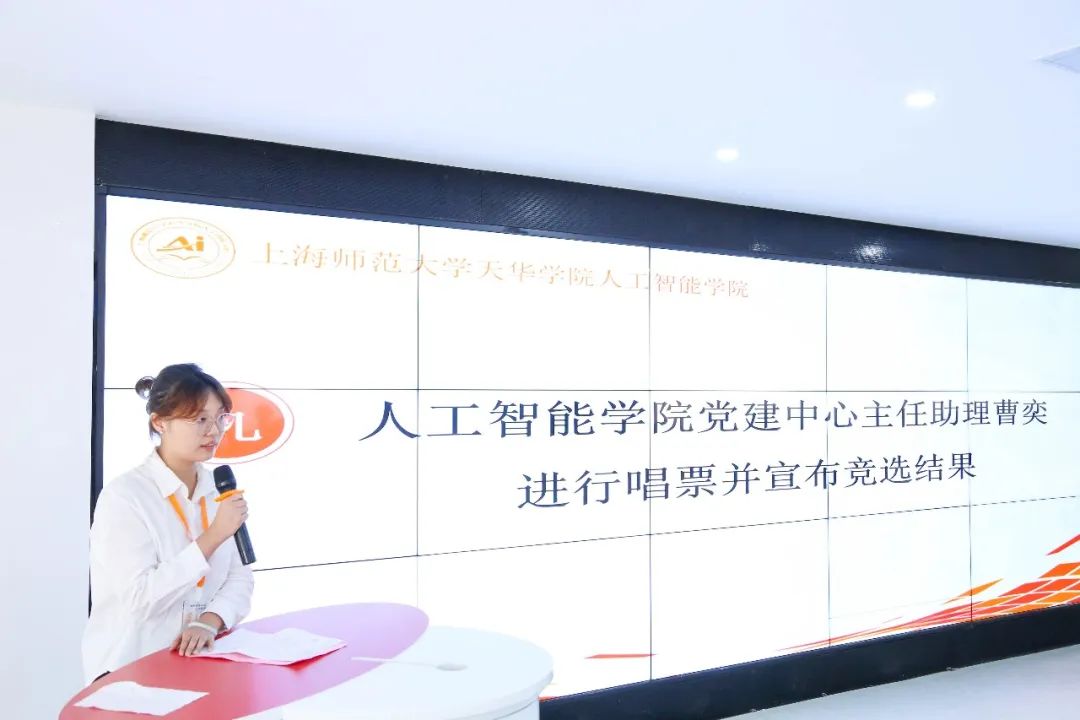 大会第九项:人工智能学院党建中心主任助理曹奕进行唱票并宣布竞选结果