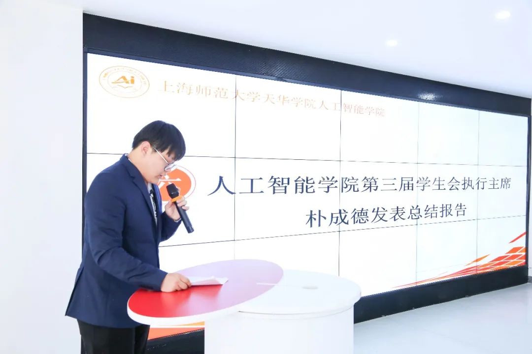 大会第六项:人工智能学院第三届学生会执行主席朴成德发表总结报告