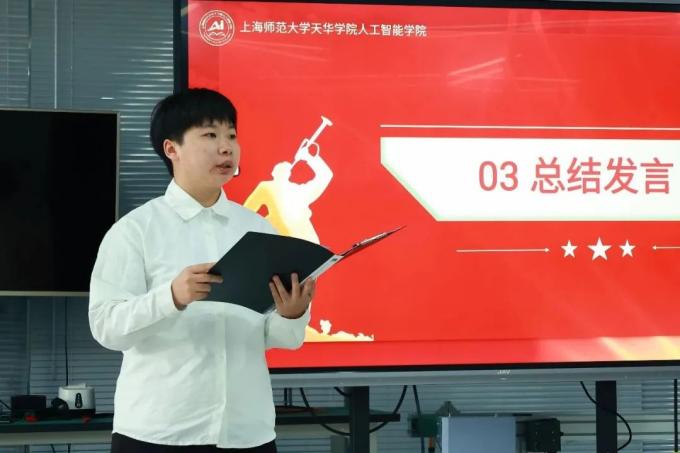 人工智能学院功能型团支部书记曲乐馨同志向带来革命先辈信件的同学们表达衷心的感谢。同时也希望在座的各位同学可以以信为载体,探求信件背后的故事。去深刻体会革命前辈们的信仰、信念和信守,向革命前辈学习,争当新时代的好青年,好团员,更好地为同学服务。