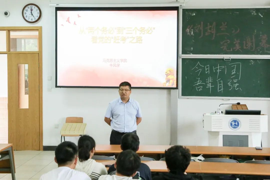 入团积极分子培训第二期于3月23日下午四点四十分在日华楼阶梯教室203由马克思主义学院牛风学老师进行授课培训。本次团课的主题是“从‘两个务必’到‘三个务必’看党的‘赶考’在路上”。牛老师带领学生们回顾了中国共产党从“两个务必”到“三个务必”的发展过程,从中国共产党人的初心使命、工作作风、底线思维等方面彰显了二者之间不变的同质性。