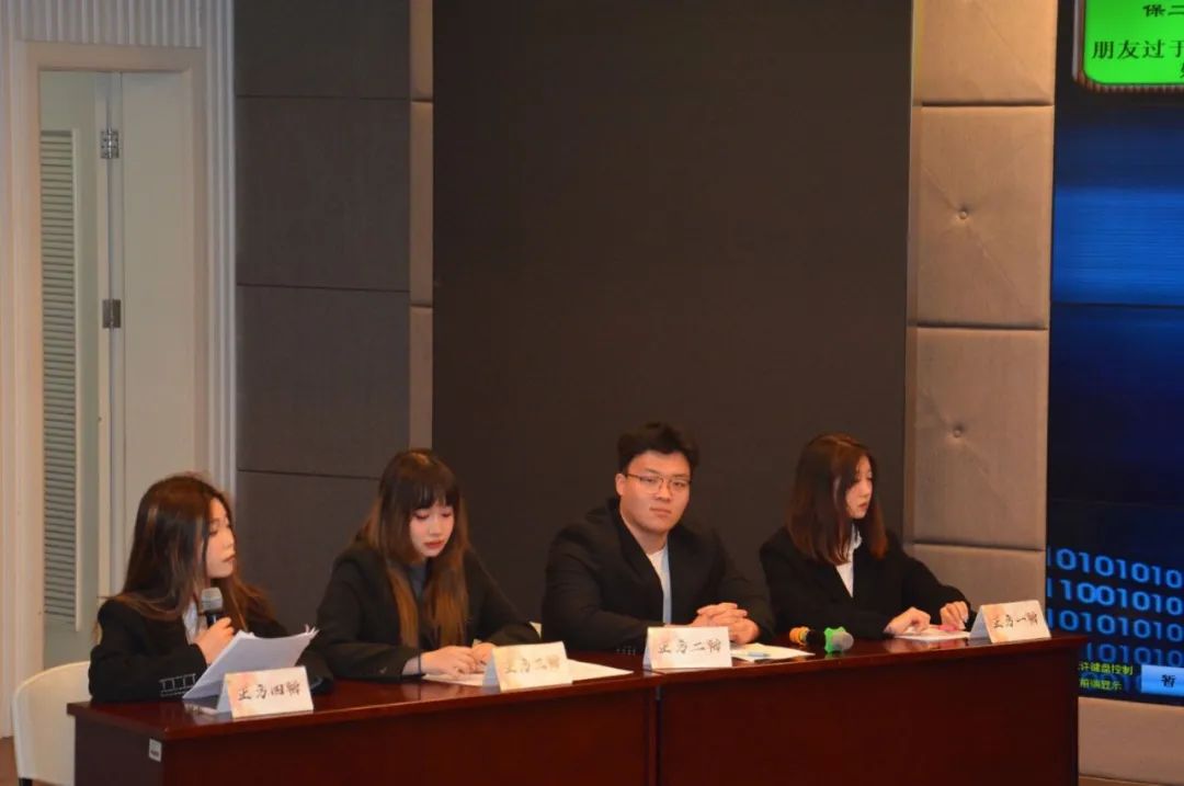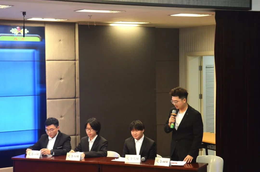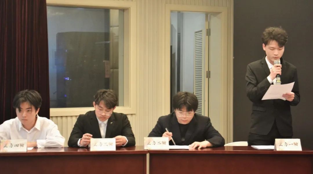 比赛的评委是:健康学院辩论队负责人唐骏杰、人工智能学院明智辩论协会负责人贾双宇,以及人工智能学院辩论队优秀成员。