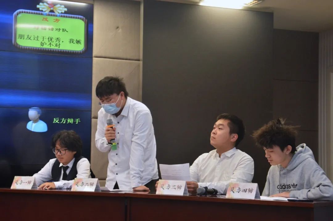 参与本次辩论的正方队伍是来自21计科1班的保二争一队,他们的观点是“朋友过于优秀,我嫉妒对”。
