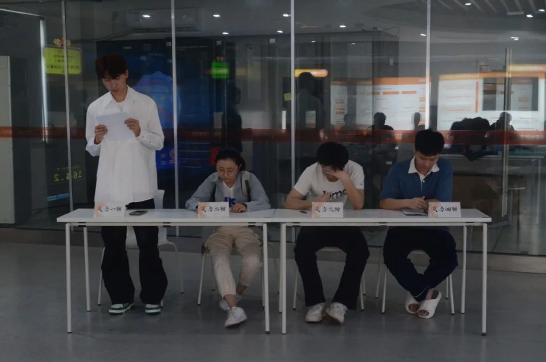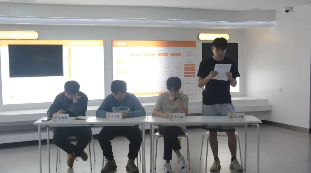 比赛的评委是:健康学院辩论队负责人唐骏杰以及人工智能学院辩论队的优秀队员。