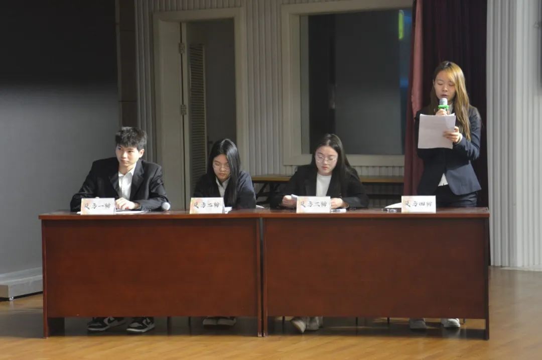 本场活动的评委是:健康学院辩论队负责人唐俊杰、学前教育学院辩论队负责人奚蕾、以及人工智能学院辩论队的优秀成员。