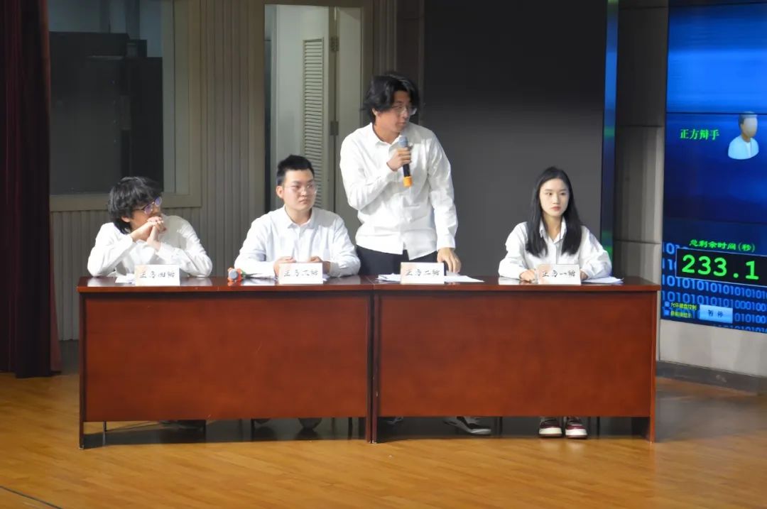 比赛第一场于2023年4月6日16:30在晖华楼小剧场举行。出席本场活动的老师有:人工智能学院辩论队负责人徐婧老师、辅导员胥德青老师以及辩论队优秀成员。