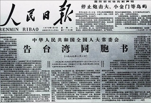 1979年1月1日 《中华人民共和国全国人大常委会告台湾同胞书》发表