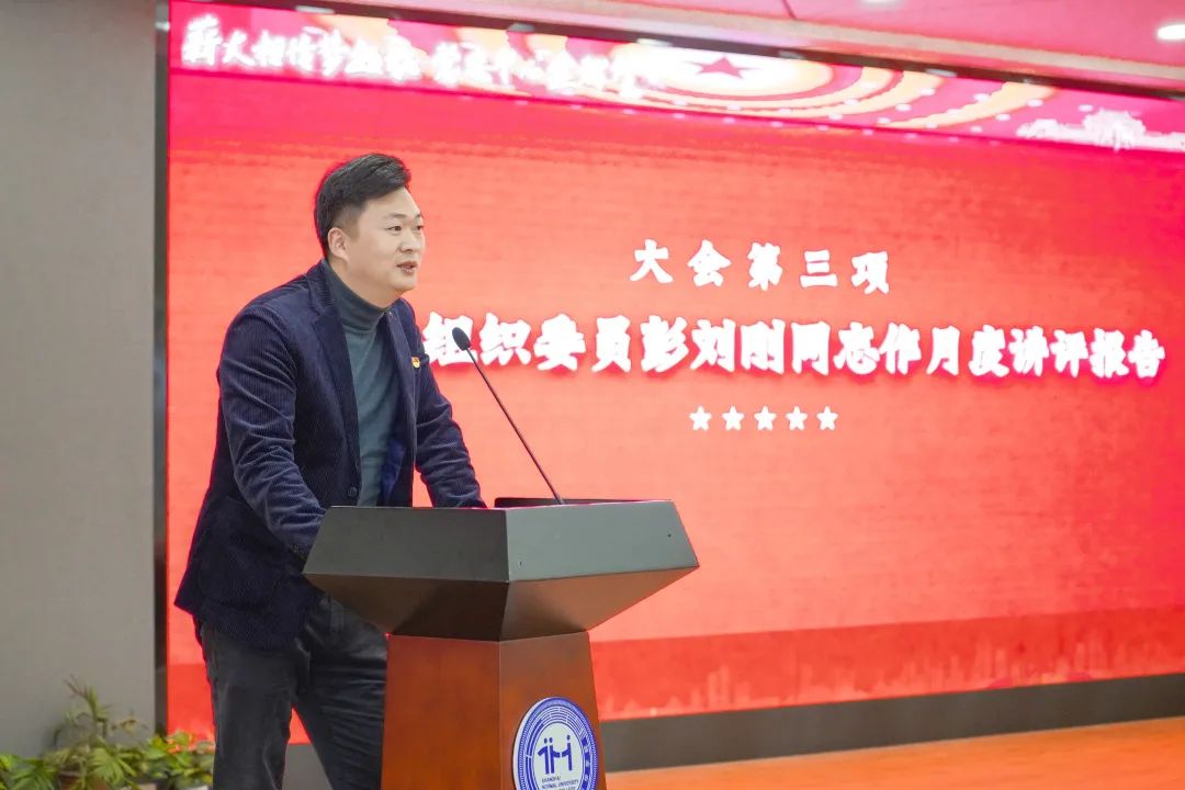 大会第三项议程,由党总支组织委员兼第二党支部书记彭刘刚同志作月度讲评报告。彭刘刚同志指出在帮扶工作中的存在的问题,以及在学习结对中的不足之处,对大家接下来的工作提出了自己的想法以及殷切的期望。希望同志们拿出党员的责任感,认真对待结对工作,守初心、担使命、不卑不亢、不骄不馁,扎扎实实走好每一步。