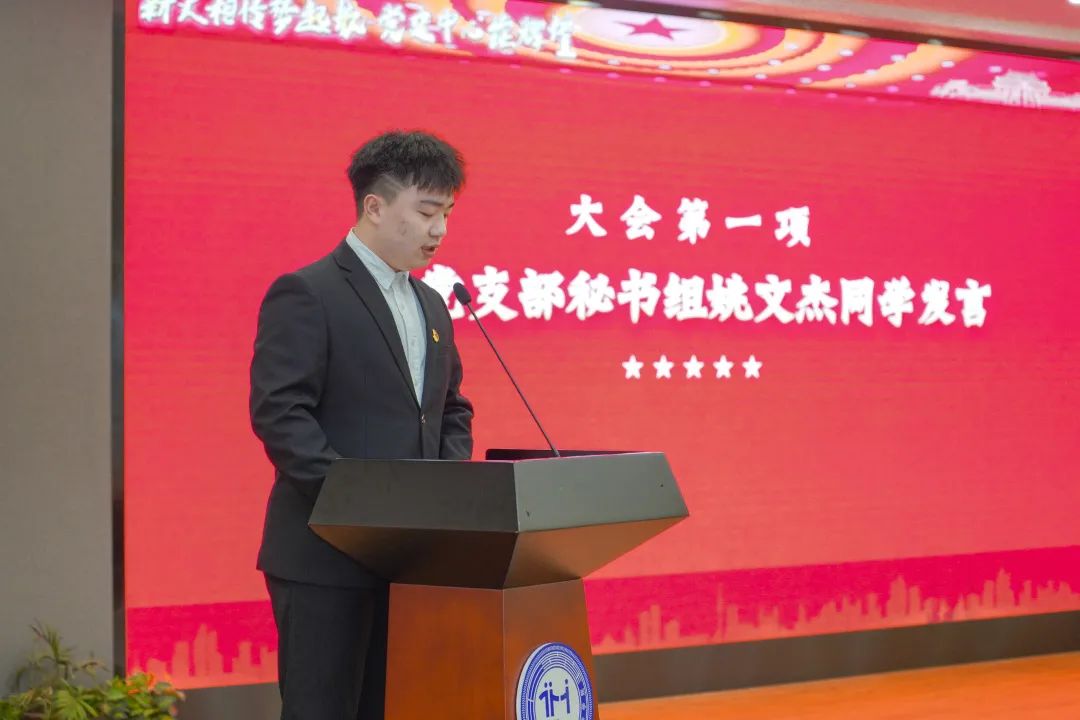 大会第一项议程,由第一党支部秘书组姚文杰同志发言。姚文杰同志首先对学期工作进行总结,提出了不足之处,希望同志们能端正态度,及时改正,对接下来的工作恪尽职守。在党建中心这一团体中,没有虚浮的口号,没有夸大的辞藻,有的只是同志们挥洒下的汗水和一步一步踏出的脚印。无论是党员结对工作,还是以“党团联动”为主题的志愿活动,无一不映衬党建大家庭的团结拼搏,相信在下一阶段的工作中第一党支部能够更上一层楼。