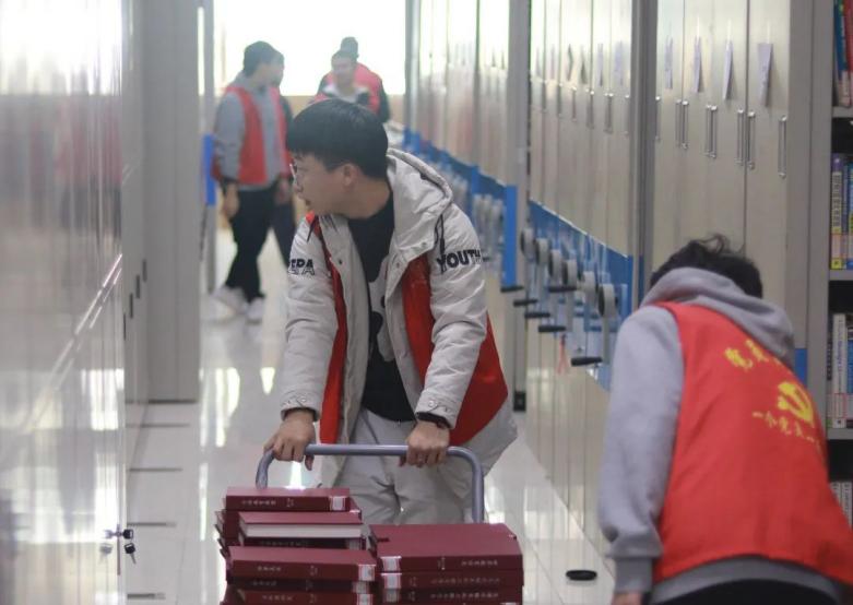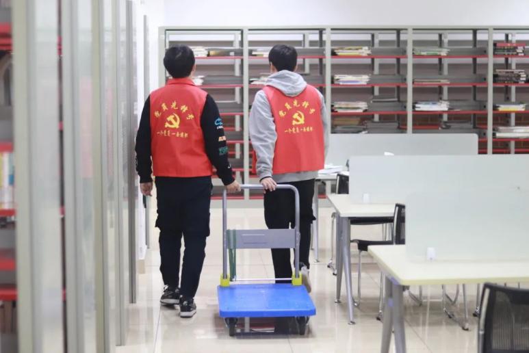 图书馆作为学生们从书籍中收获知识的场所,往往是学校中最为干净整洁与秩序井然的地方。为拓展大学生的素质,突出党员的先进性和模范性,发扬无私奉献的优良精神,人工智能学院党建中心和校图书馆联合组织了图书馆志愿活动。2021年11月25日中午,在人工智能学院党总支副书记李书祥老师的带领下,人工智能学院党建中心高党及以上全体男生走进图书馆,开展了本次整理图书馆书库的志愿活动。