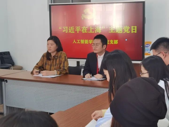 为深入学习领会习近平新时代中国特色社会主义思想和习近平总书记"七一"重要讲话精神,有序推进党史教育各项工作落实到位,人工智能学院第一党支部于10月31日中午12:30在明华楼460召开《习近平在上海》主题党日活动。活动由人工智能学院第一党支部书记陈丹丹主持。