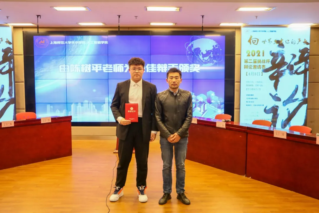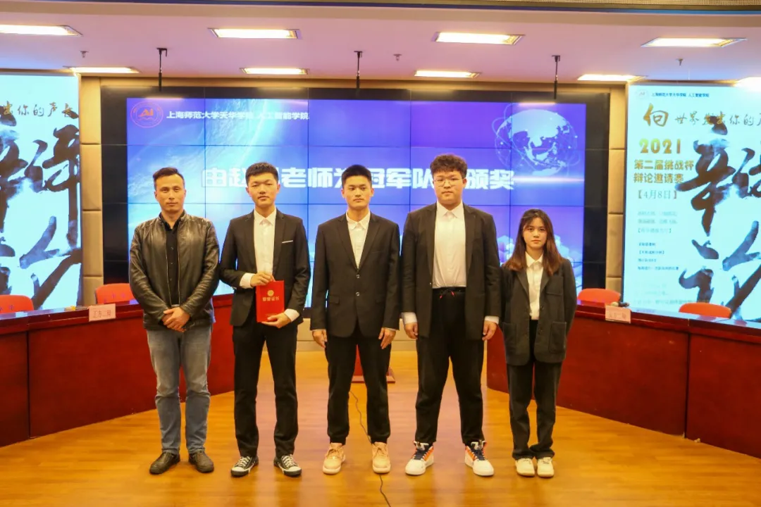 冠军队伍是反方,20机械电子工程 (胥),由赵科老师为他们颁奖。