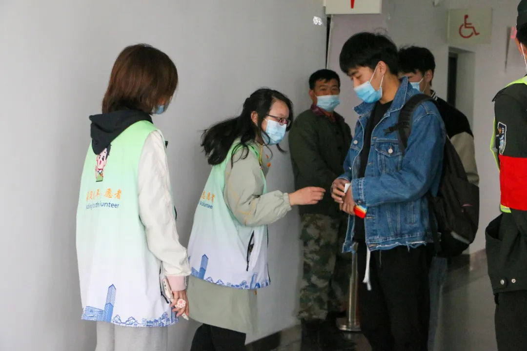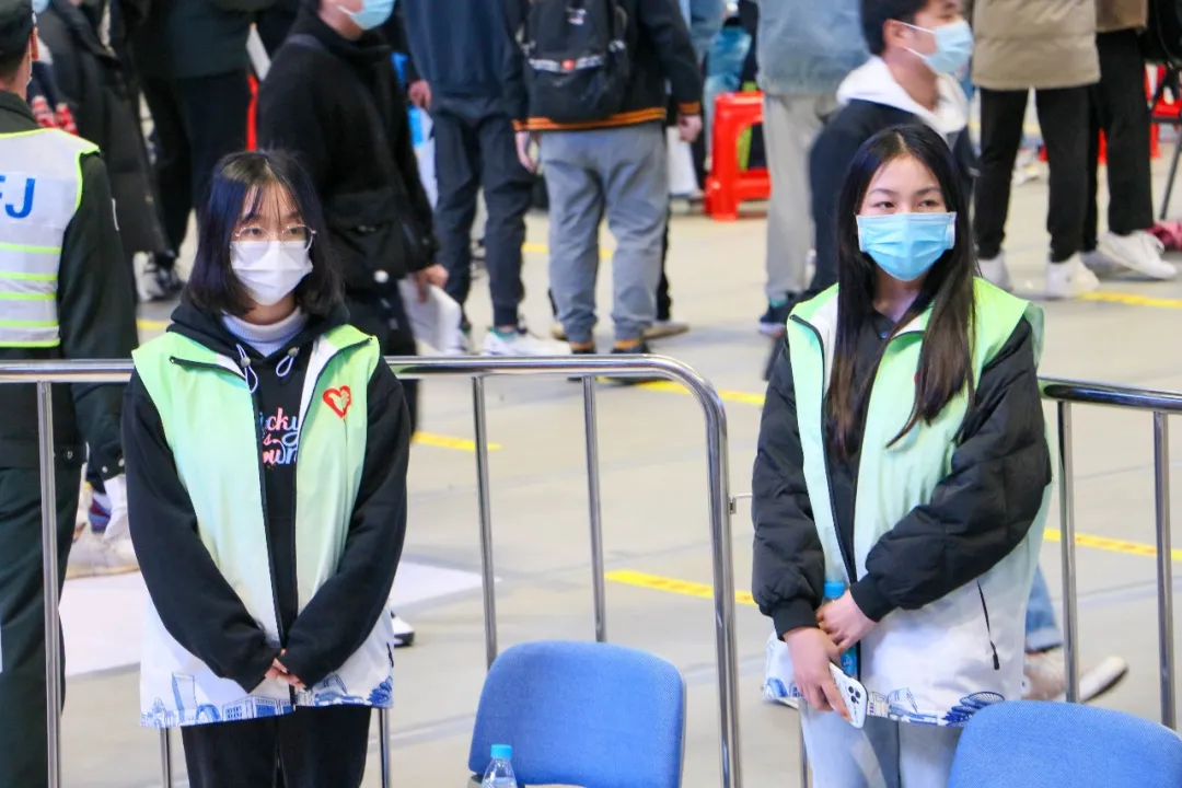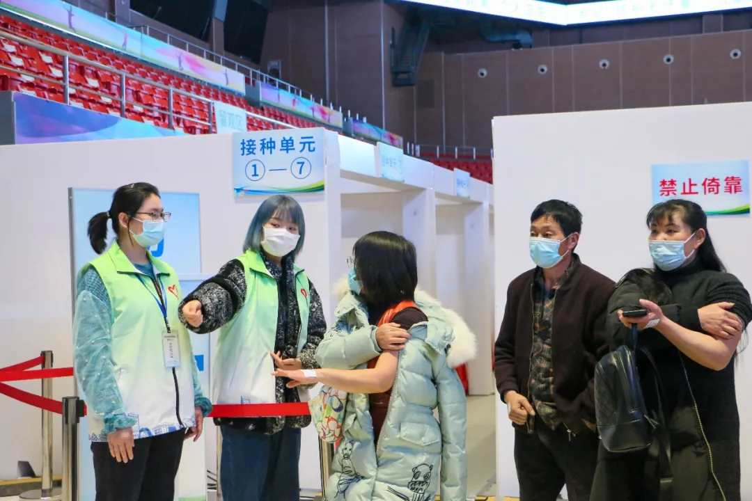 志愿者们先来到志愿者办公室进行签到,听从相关负责人的工作安排到达不同的岗位,后在工作人员的指导下,深入了解自己岗位的具体职责,以认真负责的态度和饱满的精神状态在相关区域内开展工作。一楼入口处和等候区志愿者们在积极负责地进行绿码和接种码查验、测温、消毒以及确定接种人员带好口罩入馆等工作。在羽毛球馆和篮球馆留观区的志愿者负责引导接种对象入座和打印接种证以及相关问题的咨询。一楼、二楼出口处的志愿者负责查验接种后的市民等待的时间标签是否满足留观30分钟,并提醒接种市民后续需要注意的事项。