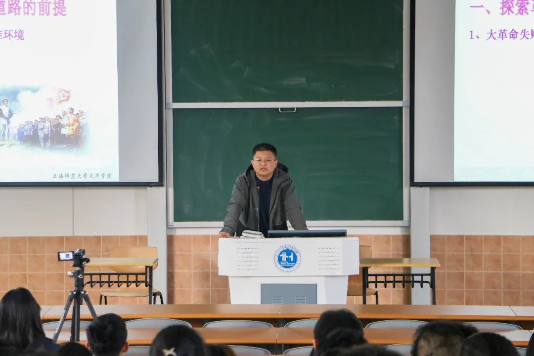 牛老师分别从探索革命新道路的前提、实践及革命新道路理论的形成三个方面为我们带来主题为“中国特色革命道路的探索 ”的一次精彩讲座。党对革命道路的探索毫无疑问是成功的, “枪杆子里出政权”,如果没有强大的实力,就没有发言的机会。从缺少武装的合作道路的失败,到工农武装割据,再到确立农村包围城市,牛风学老师系统地为我们阐述了那一段艰辛历史,给予同学们诸多的启示。
