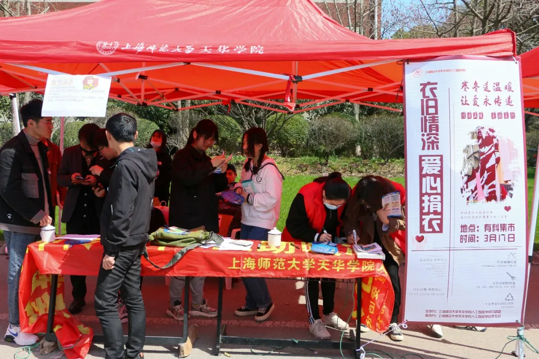 为更好地弘扬中华民族扶贫济困的优良传统,推动我院学生精神文明建设,同时,三月作为学雷锋月 , 我们要将雷锋精神立为自己的标杆,使传递爱心成为生活中的一种习惯。2021年3月10日11:00人工智能学院于桥边有料集市举行爱心捐衣宣传活动,现场热闹非凡,很多同学前来询问捐赠的持续时间,了解捐赠物资的去向,对于我们这次爱心捐衣抱有极大的兴趣和高度的关注。他们表示要尽自己的绵薄之力把不需要的旧衣物转送给那些需要它们的人,尽自己最大的努力去帮助需要帮助的人!活动期间,不少老师也来到现场,校团委书记杨央老师对此次捐衣活动表示大力支持,希望借助这次捐衣活动,把一份份温暖传递下去,让爱洒满天华的每一个角落。