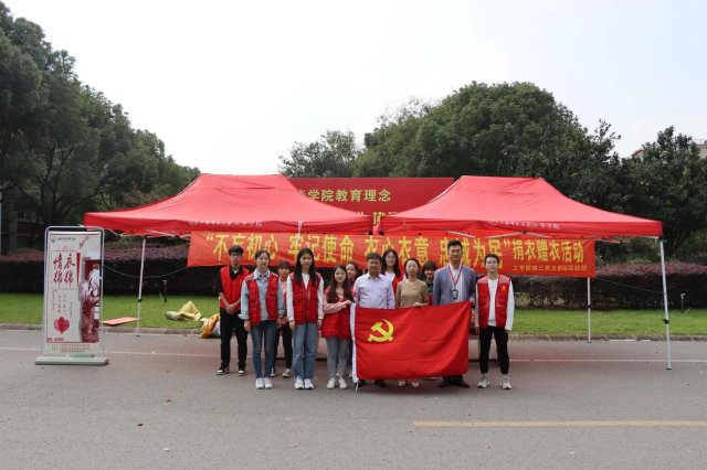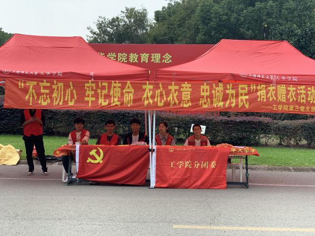 为了深入开展“不忘初心,牢记使命”主题教育,工学院第三党支部同分团委于2019年10月23日11点30分在有料市场举办了“不忘初心,牢记使命,衣心衣意,忠诚为民”的爱心捐衣活动。参加本次活动的领导老师有学保处处长曹云林,工学院党总支书记赵科,工学院第三党支部书记牛风学,副书记彭刘刚,组织委员朱姗。