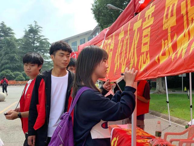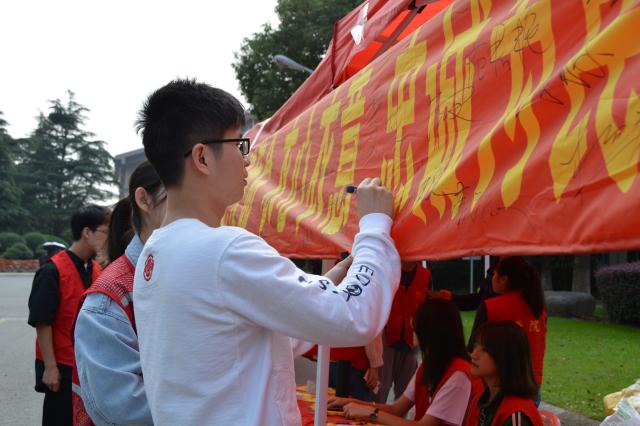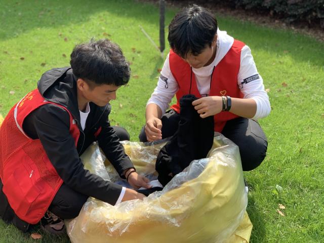 活动开始前,志愿者们便来到有料集市,开始搭帐篷、摆桌椅、准备礼品等布置场地的事宜。在往来的路上,志愿者热情地向同学、老师们介绍工学院的捐衣活动,并讲解活动的捐赠细节,邀请同学、老师们在活动横幅上签名留念。同学们在了解捐衣活动的细则后,立刻回到宿舍准备衣物送到摊位,志愿者们热情地接待前来捐赠的同学,并对捐献同学赠予小礼物。