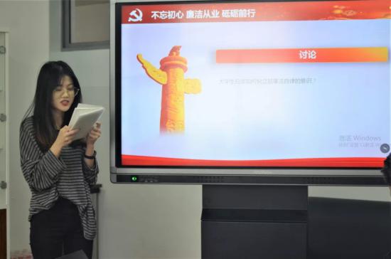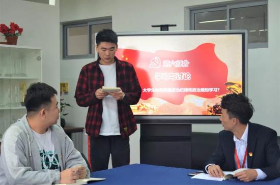会上,在党员老师的带领下,全体学生党员及入党积极分子对“担当作为”、“政治纪律和政治规矩”、“党性修养”、“廉洁自律”、四个专题进行了深入的研讨,同志们以各专题的指导思想为纲领,各自发表意见,展开了充分的研讨。