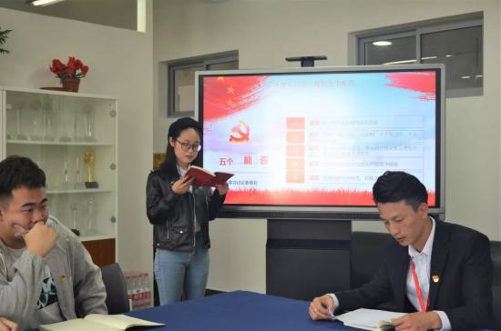 李婉璐同志发言:有担当、有作为是党员的义务和时代要求。新征程上,我们将会面对许多重大挑战、重大风险、重大阻力、重大矛盾,领导干部必须有强烈的担当精神。作为一名辅导员,责任与担当必须落实到实际行动中,在引导管理学生工作中一件事情接着一件事情办,一年接着一年干,面对困境不畏难,脚踏实地把既定的校训校规、培养目标、工作愿景变为现实。作为一名学生资助工作者,落实国家精准扶贫的要求,把资助做到实处,帮助每一位有困难的学生成长成才。