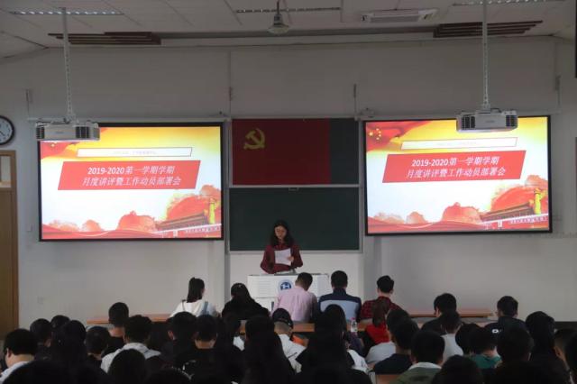 为总结本月党建工作进展,对下一步党建工作进行动员、部署,工学院党支部于2019年10月16日下午4时30分在日阶401教室举办2019-2020第一学期月度讲评暨工作动员部署会。工学院党支部书记赵科老师、副书记金玫老师、李书祥老师、党建中心指导老师权友良、辅导员彭刘刚老师、徐婧老师以及工学院党建中心全体成员出席了本次会议。工学院党员工作站梁钰捷同学主持了本次会议。