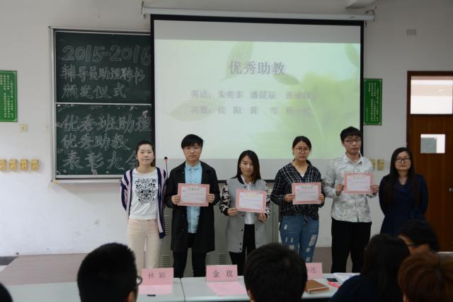 2016年5月10日中午11点50分,工学院2015-2016学年辅导员助理聘书颁发仪式暨优秀班助理、优秀助教表彰大会在日阶103举行,工学院党总支书记刘香连、党总支副书记金玫、班助理负责老师牛凤学、助教负责老师林颖以及学院15级全体辅导员助理,班助理、助教和各实习班助理、助教出席大会。