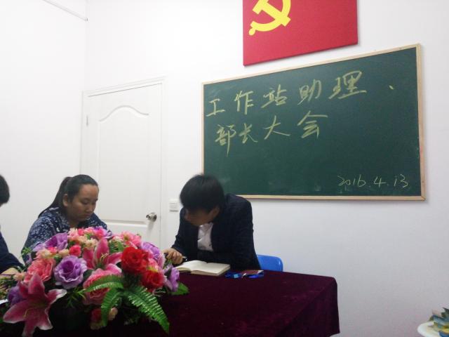 2016年4月13日晚上7点,工学院党员工作站召开站长助理部长大会,会议由工作站站长助理金志强主持,出席本次会议的有宣传部部长张春合、组织部部长王言、纪检部部长黄思嘉。