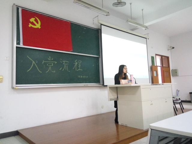2016年4月12日下午16点30分工学院第五期中级党校于日阶302举行开班第二讲——入党流程。本次培训课由汽车服务工程党支部书记张焰梦担任主讲老师,部分大一、大二同学参加。