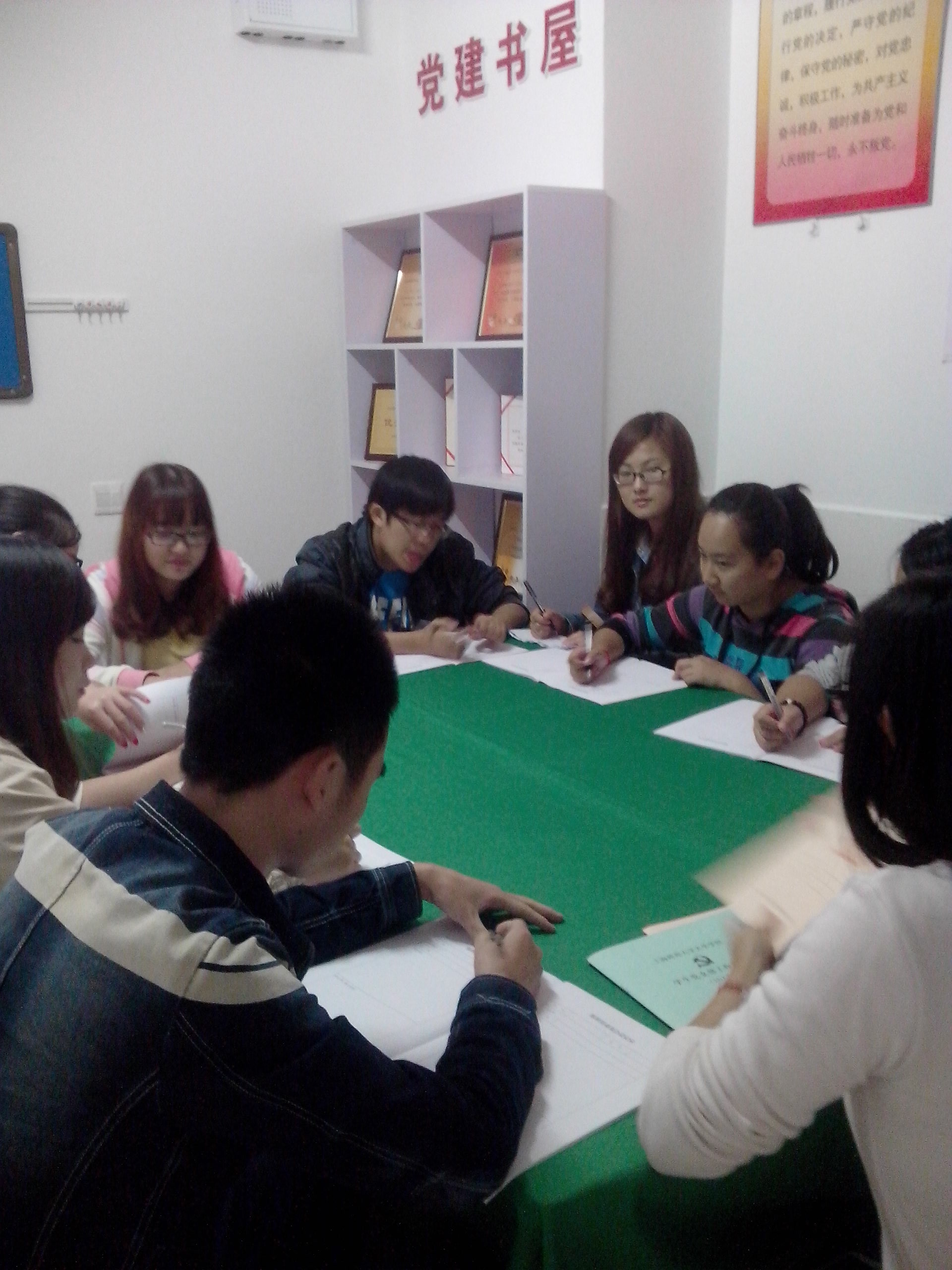 2014年10月22日我工学院通信工程党支部于我院党员工作站活动基地组织召开了专题学习会——学习《习近平在党的群众路线教育实践活动总结大会上的讲话》会议精神。与会的有通信工程党支部书记金玫老师、副书记彭刘刚老师以及13名支部党员、入党积极分子。