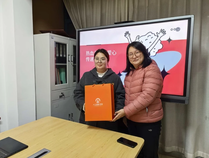 金玫老师结合专业知识,在现场为学子们讲解献血后心理调适要点并对献血成员勇气的称赞,表示:人工智能学院“一站式”学生社区服务站让心理关怀从‘被动等待’变为‘主动上门’。”金玫老师一同为AI心理服务站成员颁发“爱心献血礼包”,现场掌声不断。