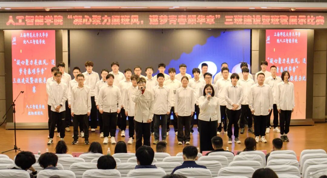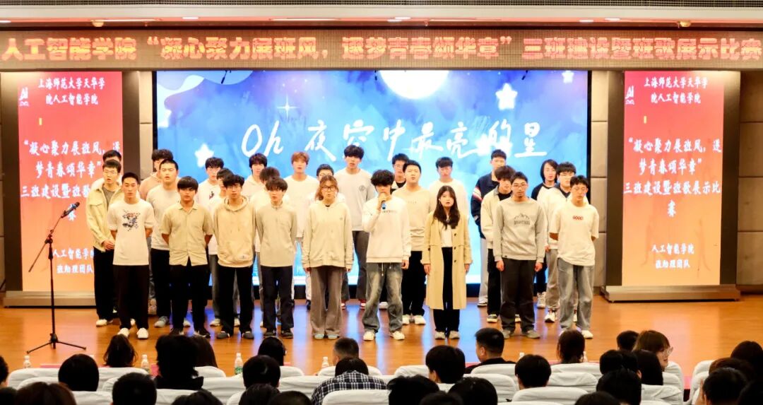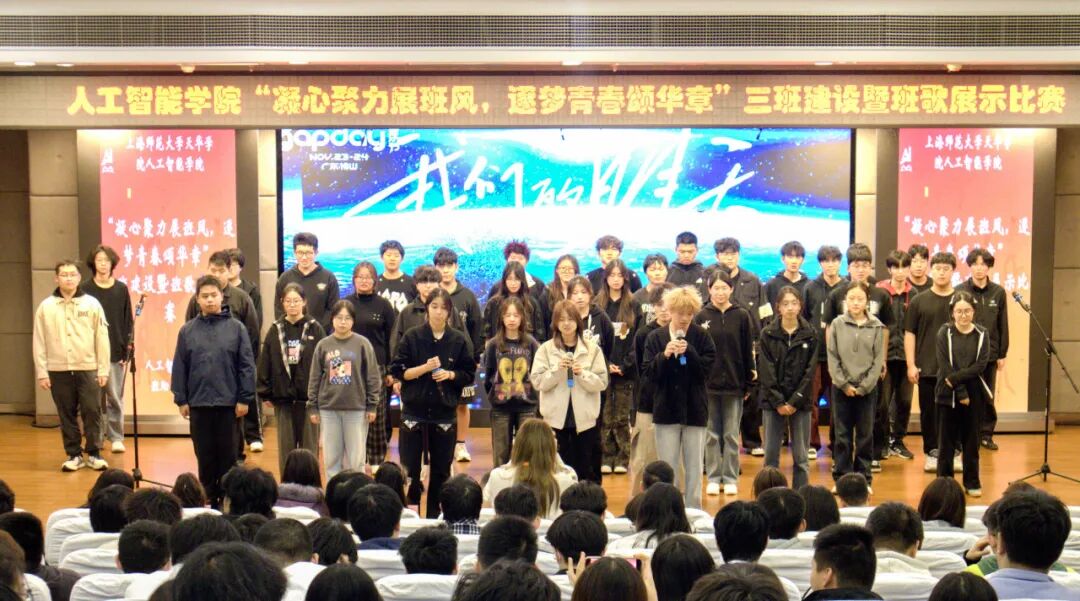 为深化班级文化建设,凝聚集体向心力,展现新时代青年学子的责任担当与青春风采。2025年11月10日16:00,人工智能学院“凝心聚力展班风,逐梦青春颂华章”三班建设暨班歌展示比赛在小剧场成功举办。学院领导、评委老师莅临指导,8个参赛班级以饱满热情、昂扬姿态同台竞技,全方位呈现班级建设成果与集体精神风貌,为现场观众带来了一场兼具思想深度与艺术感染力的文化盛宴。
