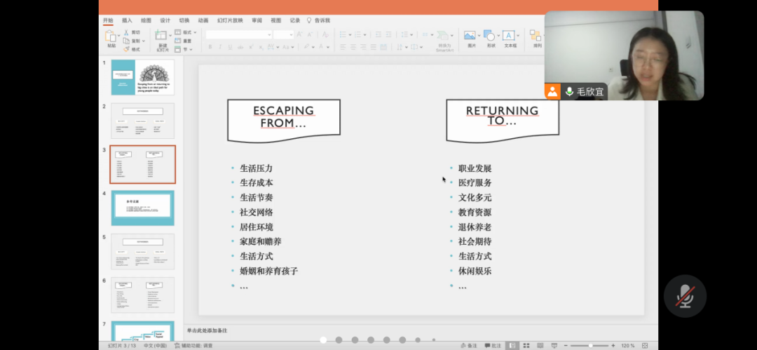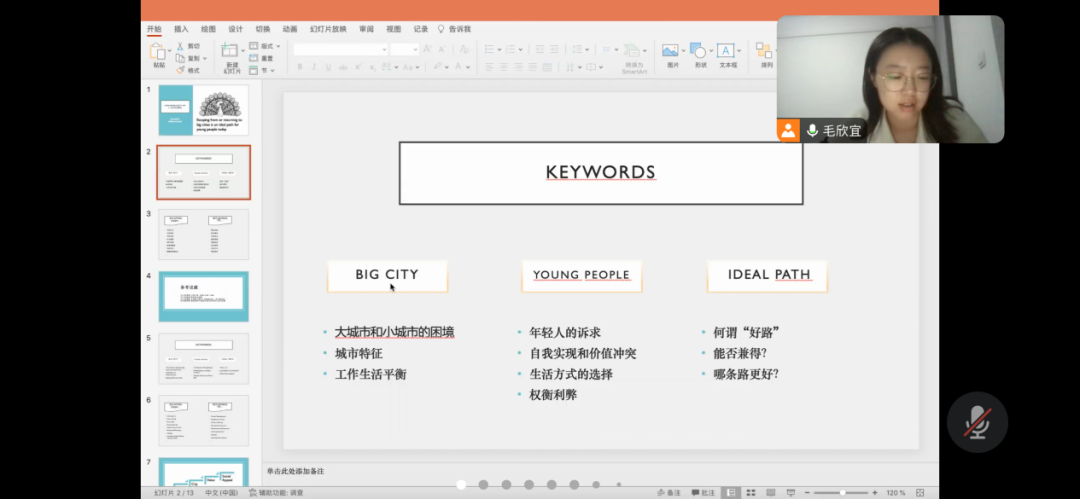 为了进一步提升大三年级学生的英文辩论能力,人工智能学院大三年级辩论教研组在金玫老师的安排下,邀请了英文辩论指导教师毛欣宜老师,针对辩题“Escaping from or returning to big cities is an ideal path for young people today”(逃离或回归大城市是当今年轻人的理想之路)为学生们举办了一场别开生面的线上破题指导。本次活动有效地克服了高年级学生面临的时空限制,确保了所有大三年级中外合作专业的学生都能参与其中。