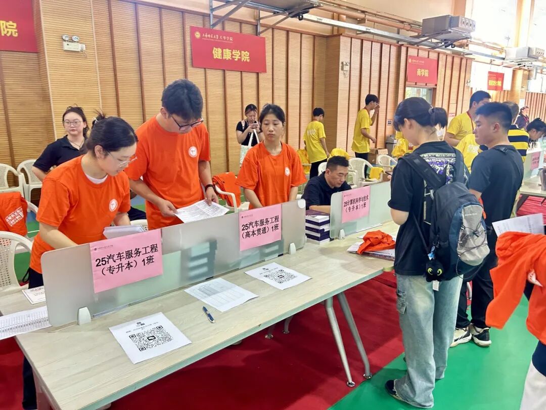 新生入校伊始,便有志愿者主动上前接过行李,全程引导办理报到手续——从信息核验、材料领取,到陪同前往宿舍安置个人物品,志愿者们细致周到的服务让新生快速适应校园节奏。过程中,志愿者还同步讲解学校配套设施使用方法与核心规章制度,为新生搭建起了解校园的“第一座桥”。