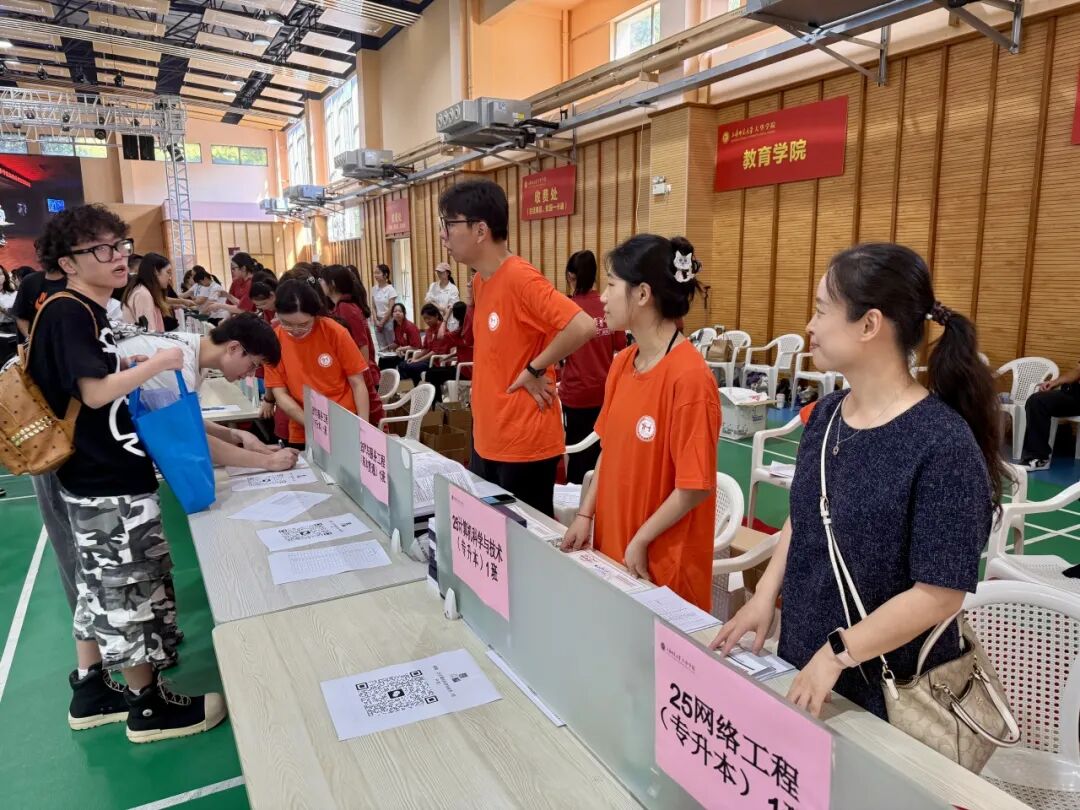 9月6日上午7:30,人工智能学院2025级专升本新生报到工作在体育馆正式启动。学校副校长、学院院长凌旭峰、常务副院长吕博、副院长刘伟、党总支书记赵科、党总支副书记金玫亲临现场,与新生亲切交流,送上入学祝福。