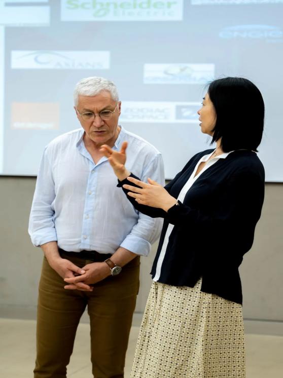 出席本场宣讲会的有人工智能学院副院长吕博、机械电子工程专业主任朱龙俊、学院顾问林军、国际交流处处长胡珍、国际交流处副处长夏智源、合作高校法国Institut Polytechnique UniLasalle综合理工学院亚眠校区教务长Nouredine ZITOUNI 、合作课程之一《电工电子技术》任课教师Ahmadi SAJJAD、法方代表,中国项目负责人Wu Cecile 。本次宣讲会由Nouredine ZITOUNI教务长主讲,法方代表Wu Cecile担任翻译。