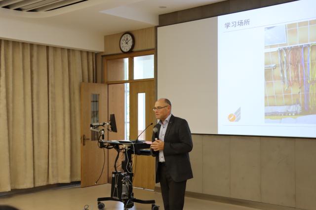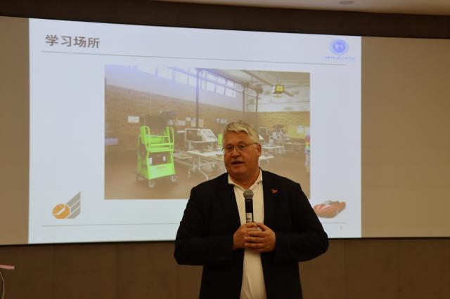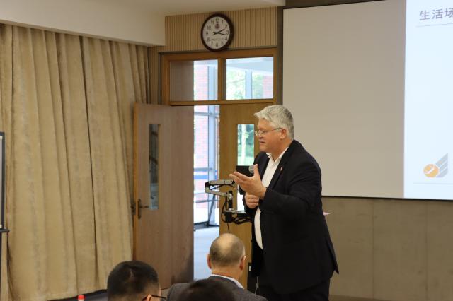 会议第四项为德国手工业协会项目主管Rehbein先生介绍德国手工业协会汽车实训的具体情况。Rehbein先生首先对中德合作专业的学生对于德国手工业协会给予的信任表示衷心的感谢,并向大家介绍手工业协会的教学场所拥有先进的教学设备,是一座拥有高科技的现代化车间。然后,Rehbein先生对手工业协会的教学培训进行了详细地讲解,教学培训分为初级培训和专业培训,在培训中会有相应的专业老师对学生关于发动机原理、汽车维护等方面的专业知识进行教导。最后,Rehbein先生谈到对于工学院教学观念以及培育能力的认可,希望在中德合作的教学上能够一直与工学院保持良好的沟通,把合作教学项目一直发展下去。